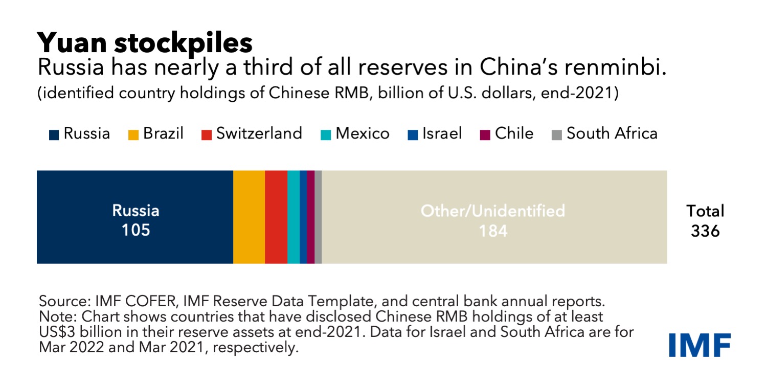 As we document in a recent IMF working paper, the reduced role of the US dollar hasn’t been matched by increases in the shares of the other traditional reserve currencies: the euro, yen, and pound. Moreover, while there has been some increase in the share of reserves held in renminbi, this accounts for just one quarter of the shift away from dollars in recent years, partly due to China’s relatively closed capital account. Moreover, an update of data referenced in the working paper shows that, as of the end of last year, a single country—Russia—held nearly a third of the world's renminbi reserves.