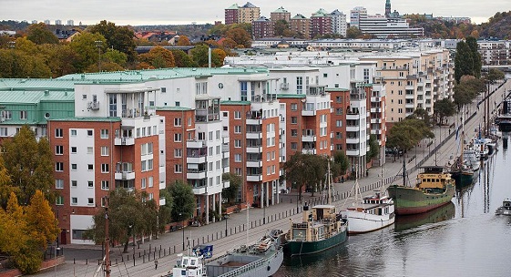 Newly built apartment blocks in Stockholm, Sweden: Many Swedish households take out large mortgage loans to pay for soaring house prices (photo: Bloomberg/Gettyimages)