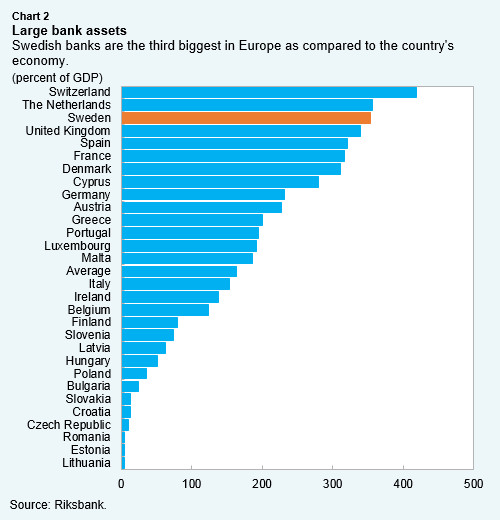 Sweden’s financial system is one of Europe’s largest relative to the country’s economy (see Chart 2). It is also complex and highly interconnected domestically and internationally, reflecting Sweden’s role as a regional financial hub.
