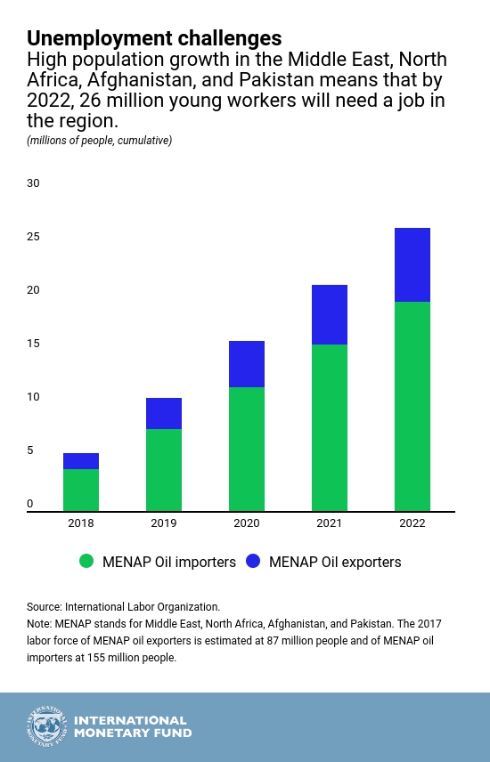 These countries need such reforms to tackle their already high unemployment and to absorb the over 26 million young people expected to enter the labor force by 2022. Governments can play an important role in boosting the private sector by improving the business environment, transparency and accountability of public institutions, and access to finance. Enhancing education to better match workers’ skills needs and encouraging freer movement of labor are also important. At the same time, social safety nets should be maintained to safeguard the vulnerable in society.