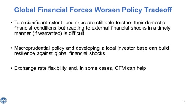 That concern is especially acute for policymakers in small, open economies and emerging markets—because they have only limited ability to influence domestic financial conditions.