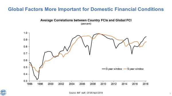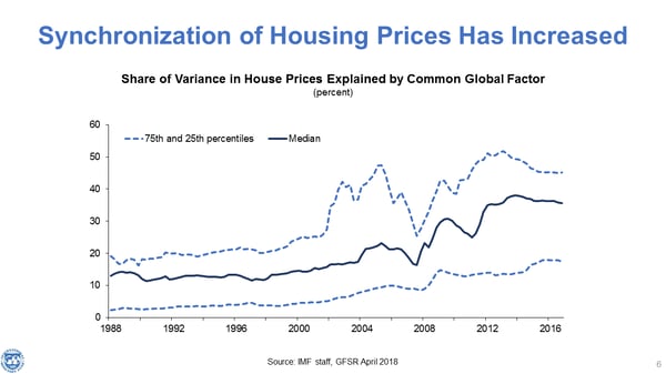Amid our most recent research at the IMF, we’ve found that this reality affects not just financial assets, which are easily traded across borders, but also fixed assets that are non-tradable. As we described in a chapter of our most recent Global Financial Stability Report —the “GFSR”— international flows of capital are wide-ranging as global investors search for yield . . . so much so, that even housing prices have become more correlated across countries (IMF 2018a).
