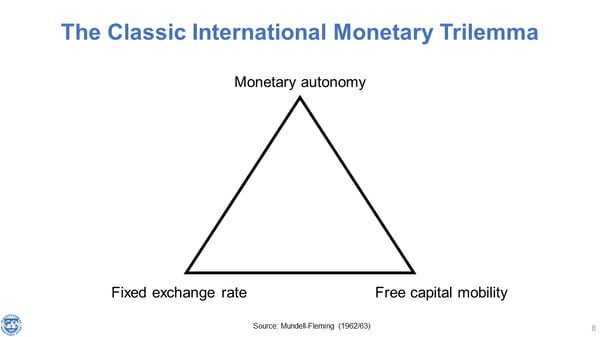 The “Mundell-Fleming Trilemma” encapsulates a fundamental constraint: Only two of the following three factors are compatible: