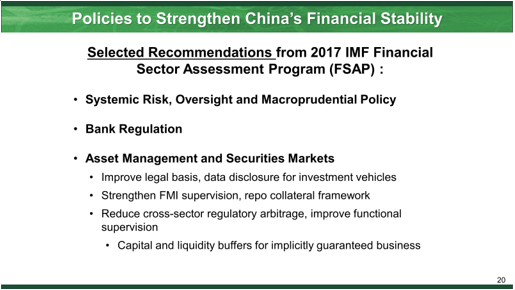 This interconnectedness presents a major vulnerability for China’s financial system. It should continue to be a focal point of efforts to rein in financial-stability risks. The recently announced asset-management rules, and other improvements to the regulatory framework, are important steps toward addressing these risks. But implementation will be challenging.
