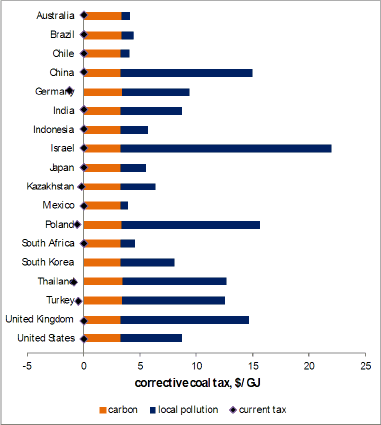 Graphique 1. Taxes correctrices sur le charbon pour tenir compte des coûts environnementaux, pays représentatifs, 2010