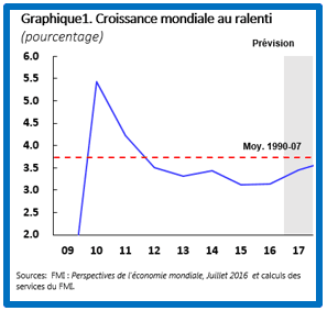 L’année 2016 sera la cinquième d’affilée où le taux de croissance du PIB aura été inférieur à sa moyenne à long terme de 3,7 % (1990-2007), et 2017 pourrait bien être la sixième (Graphique 1). L’économie mondiale n’a jamais été si anémique si longtemps depuis le début des années 1990 — ère de transition économique qui a causé le ralentissement de la croissance. Que s’est-il passé?