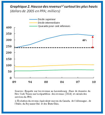 La faiblesse de la croissance mondiale, à laquelle s’ajoute l’aggravation des inégalités, nourrit un climat politique qui sape l’élan des réformes et pousse les pays à se replier sur eux-mêmes. Dans un vaste échantillon de pays avancés, les revenus des 10 % les plus riches ont progressé d’environ 40 % au cours des 20 dernières années, alors que ceux des déciles inférieurs se sont très peu améliorés (Graphique 2). Les inégalités se sont aussi creusées dans beaucoup de pays émergents, mais l’impact sur les plus démunis a parfois été compensé par une forte progression générale des revenus.