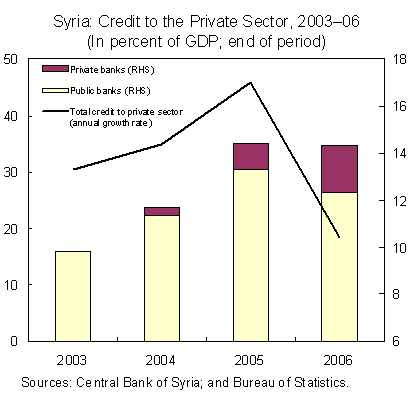 2. This economic revival owes much to the reform impetus initiated 2-3 years ago and sealed by the adoption of the ambitious 10th 5-year development plan. Broad-based reforms have made significant changes in the economic and financial landscape. The exchange rate has been effectively unified and virtually all restrictions on access to foreign exchange to finance imports have been eliminated. Most economic sectors have been opened to private enterprise, boosting the contribution of the private sector to non-oil GDP above 80 percent. A dynamic private banking sector is now leading financial sector growth, and the Damascus stock exchange is set to open early next year after being closed for 40 years. A new investment law has liberalized the investment regime further, created a one-stop-shop for investors, and put foreign and domestic investors at par. Complex, opaque and prohibitive taxation has been replaced by more efficient and equitable taxes and tax administration has been modernized to support the new tax legislation. In addition, law number 51 enacted in October, 2006 unified tax incentives for investment. The local industry has been exposed to greater international competition through several rounds of tariff cuts—which brought the average tariff rate to 14½ percent down from close to 20 percent three years ago and the maximum rate from 225 percent to 60 percent; a reduction in the number of prohibited imports; a relaxation of import licensing procedures; and a simplification of customs clearance. Strides are being made in building the regulatory frameworks to govern the new market economy, most notably in the banking, insurance, and capital markets, and in housing and real estate. Last but not least, improvement in the efficiency of the taxing system and strict fiscal discipline ensured a timely adjustment to a large and precipitous loss of oil revenues.