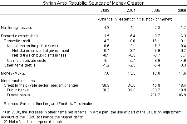 4. Analysis of recent economic developments is increasingly constrained by data weaknesses. These have been amplified in the recent past as the acceleration of structural reforms has severely tested the ability of a weak statistical infrastructure to cope with the changes. The situation in Iraq added to the challenge. The main drivers of the ongoing economic revival, namely exports, private investment, and private sector activities in general are not adequately surveyed. Pervasive subsidies and weak accounting standards in public enterprises (PEs) are a major challenge to the weak methodological framework underlying the compilation of the national accounts and introduce a significant margin of error in growth estimates. The move to a new CPI, although based on a more representative consumer basket, has unfortunately introduced uncertainty about the level of inflation and its trend. Revisions to weak customs data—to account among other things for the intensification of shuttle trade with Iraq—have blurred the picture as to the underlying strength of the non-oil current account balance. 5. Economic analysis and macroeconomic management are complicated in this statistical vacuum, and the authorities are encouraged to be vigilant in monitoring the state of the economy, particularly inflation and foreign trade. Utmost priority should be given to mobilizing the needed expertise to upgrade statistics. Pending tangible improvements in the quality of the data, research units at the Deputy Prime Minister's Office, the Ministry of Finance (MoF), the Central Bank, and the State Planning Commission should not be constrained by the use of "official data" and should be encouraged to work closely together to fill in the data gaps with economic analysis and consistency checks among the key sectors (fiscal, monetary, external, and real sectors) to come to a reasonable understanding of current developments. Given the data weaknesses, the mission's assessment is only tentative. I. Recent Developments and Near-term Outlook 6. Staff estimates growth of non-oil GDP at around 6-7 percent in 2006. Given a 6½ percent drop in oil production, this would be consistent with an overall growth of 4½ -5 percent. Growth appears to have been mainly driven by private consumption and non-oil exports and may have been supported by some strengthening of private investment. Private consumption was boosted by employment and wage gains, a good harvest (particularly for olives whose production doubled); and the boom in real estate and rental prices, which translated into a significant wealth effect for property owners; amidst the influx of Iraqis. The strong performance of non-oil exports, which are estimated to have increased by about 30 percent in 2006, reflects the surge in exports to Arab countries, which were boosted by stronger demand as well as the granting of free access under the Great Arab Free Trade Area. 7. The improved business climate might be supporting a steady growth in private investment, but a real take-off does not seem to have materialized yet. Nonetheless, the impressive volume of approved projects under Law No 10 in 2006—which reached SP 470 billion (US$9.2 billion and 26 percent of GDP) more than 2½ times the level in 2004—and their diversity augurs well for growth prospects in the near- to medium-term.1 Almost three-fourths of the volume of these investments are in increasingly diversified industrial projects (including cement, steel, food processing, pharmaceutical, textile, and power generation), and another 20 percent are in the transport sector. Investment in the much publicized real estate projects (consisting of commercial, recreational, and other services associated with government housing projects) represented only about 15 percent of the total approved projects in 2005 (SP 60 billion) and their social returns—which are feared to be low in some circles—may actually be quite high if they are part of a well diversified investment strategy. The share of foreign direct investment (FDI) is estimated to have remained fairly stable at about 20 percent.2 Diversity in the investment strategy is also evidenced by the equally strong growth in investment approvals in tourism. Prospects in that sector are strengthening, with the ministry of tourism now preparing to launch mega projects, based on the success it achieved in attracting investors' interest in smaller projects.