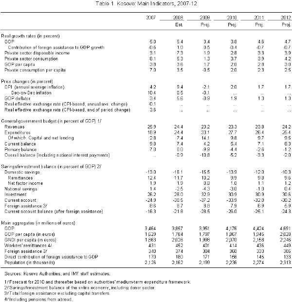 Fiscal Sustainability—Undermined by Ad Hoc Expenditure and Financing Policies 4. Fiscal policies are adrift—policy priorities lack clarity and expenditure management is loose. This year’s budget was predicated on the unrealistic assumption of budget neutrality of a substantial loan from the budget to KEK (3¾ percent of GDP), the publicly-owned energy company. Privatization of KEK and repayment of this loan by the new owner was supposed to offset in this year’s budget the capital expenditure associated with the extension of this loan. However, continued privatization delays in all likelihood will result in a pronounced increase in capital expenditures, even though the budgeted amount of the loan may still be reduced. The mission appreciates the importance of energy policy and its implications for the economy and national security. Nevertheless, given the high priority the government assigns to energy policy, it should stand ready to match energy-related expenditure increases with expenditure cuts to safeguard fiscal sustainability. Instead, there are additional unfunded mandates that are inflating this year’s budget expenditures by at least 1½ percent of GDP. As a result, the mission projects government expenditures to grow 39 percent this year, and fiscal risks may cause additional pressures. • Mid-year budget review (MYBR). Contrary to the instructions by the Ministry of Finance and Economy (MoFE), spending ministries requested additional allocations under the MYBR and the government is now considering a further increase in expenditures over 1½ percent of GDP this year. No increases should be granted—they would call into question the government’s overall expenditure policy and set a dangerous precedent for the 2010 budget preparations. • Fiscal risks. The dilapidated state of KEK may result in costly, additional energy imports; the costs and financing of the highway project to Albania considered as part of the MYBR have not been properly assessed and risks committing the government to substantial future outlays; the fiber-optics projects for schools (2 percent of GDP) currently under consideration by PTK, the publicly-owned post and telecom company, if undertaken, provides a public service and, in principle, should be accounted for as public investment; finally, calls for renewed wage hikes ahead of the November local elections should be resisted. 5. Recent legal initiatives may create additional expenditure pressures. Several laws and policy documents are being adopted without due consideration of their combined fiscal costs and consistency with the policy priorities set out in the government’s medium-term expenditure framework. These include the Law on the Rights and Responsibilities of Deputies (members of the Assembly), the Law on Civil Service, and the Law on Salaries of Civil Servants, and the White Paper on Social Policies. While the implementation of these policies is likely to be delayed to next year, these unfunded mandates will add at least about 1 percent of GDP to future expenditures. 6. Without substantial expenditure cuts, ad hoc deficit financing poses considerable risks to macro stability. If all expenditures are executed in full the fiscal deficit is likely to reach nearly 11 percent of GDP this year. While the mission understands that the execution rate of investment projects and some current expenditures may reach about 80 percent, the budget deficit would still reach approximately 8 percent of GDP. There are three major options for deficit financing: (i) drawing down the government’s bank balance at the CBK; (ii) spending a prospective dividend payment from PTK; and (iii) borrowing from financial institutions upon passage of the Law on Public Debt. All three options risk undermining macro stability, and this risk needs to be taken into account when determining expenditure priorities and the level of the deficit. • Bank balance. A reduction in bank balance further limits the scope for the authorities to intervene in the financial sector, in case of need. While the sector has remained stable, prudent policy making requires preparing for the possibility of a liquidity shortage. Left unaddressed, the consequences of such a shortage are undoubtedly serious for macro stability and national security. • PTK dividend. PTK deposits are an important source of funding for the banking sector (17 percent of total deposits at end-May 2009). If a dividend payment is received from PTK, the government intends to deposit these funds with the same commercial banks that are currently reliant on PTK deposits as funding. While a dividend payment on its own would not upset banks’ funding, its possible use as budget financing would. • Public borrowing. The main risk is crowding out of private sector investment given that the growth of private sector credit continues to closely follow that of deposits. Policy Recommendations—Expenditure Prioritization, Credible Fiscal Policy Anchor, and Improvements in Tax Administration 7. First, expenditures priorities need to be reassessed and substantial expenditure cuts are needed to restore fiscal sustainability. Based on year-to-date budget execution, capital expenditure allocations should be reprioritized to identify scope for further expenditure reduction. The extent of these cuts should be determined in order to safeguard an adequate level of the government’s bank balance held at the Central Bank of the Republic of Kosovo (CBK) and, more generally, put deficit financing on a solid footing. 8. Second, a credible anchor is needed to underpin fiscal policies and regain control—once and for all—over expenditures and the deficit. Besides lacking expenditure priorities and the risks from the energy sector, budget policies are subject to major uncertainties over the long term from (i) the forthcoming assumption of Kosovo’s share in the debt of the former Yugoslavia and its impact on Kosovo’s level of external d