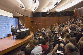 Thanks to the IMF, thanks to Professor Friedman for launching what is a deceptively simple thesis, but as a result of which we're all engaged and enter this conversation more deeply. I think we realize a lot of our own understandings — I don't know what the plural of Weltanschauung is but I hope a German speaker will tell me afterwards — are modified by this integration not just of markets and economies but of our understanding of the human person in society. Thanks also to the panelists who offered their insights. It would be great if they too could stay around over a glass of Perrier for the book signing. I was thinking, Simon, that the sequel to Professor Friedman's book has to have a title like Confessions Of An Economic Lothario or something like that, something very glamorous to whip those Brits into an understanding of The Iliad. Thank you very much. |