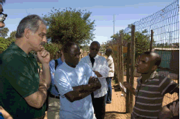 Bio-Tchané ( c ) and IMF First Deputy Managing Director John Lipsky ( l ) meet with residents in Soweto, South Africa (IMF photo)