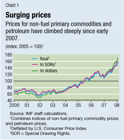 The IMF's commodity price index has risen by a cumulative 10 percent in 2008 after having already increased by about 30 percent between December 2006 and December 2007 (see Chart 1).