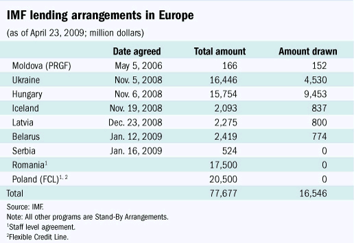 The IMF is already deeply involved in lending to those countries most hit by the crisis (see table). IMF-supported programs are helping countries such as Hungary, Latvia, Romania, and Ukraine fill financing gaps, ease the burden of fiscal adjustment, and repair banking systems. “Our programs have been tailored to individual country circumstances and focus on the most immediate issues to resolve the crisis,” Belka said.