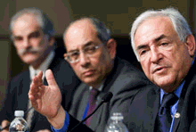 IMF head Strauss-Kahn (r) with IMFC Chairman Boutros-Ghali (c), IMF First Deputy Managing Director Lipsky at IMFC press briefing (photo: IMF)