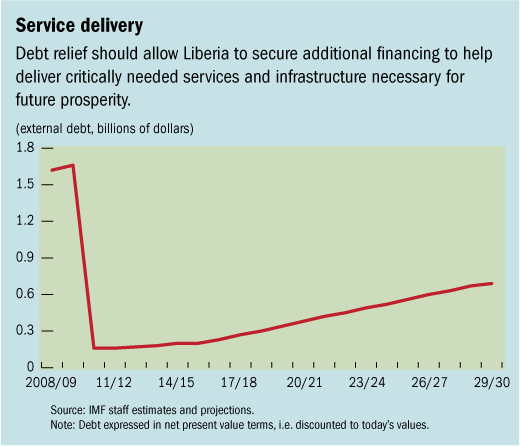"Debt relief would allow Liberia to secure additional financing, in initially modest amounts, to help deliver critically needed services and infrastructure necessary for Liberia’s future prosperity,” IMF First Deputy Managing Director John Lipsky said on a visit to Monrovia, Liberia earlier this year. “Liberia’s own economic and social policies, political stability, and above all continued peace and security will be of paramount importance for delivering the better Liberia that we all hope for,” he added.