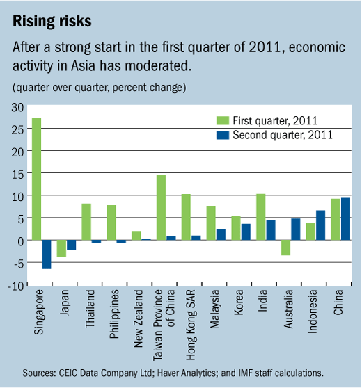 With increasing financial turbulence in the euro area and growth slowing in the United States, Asia is facing rising risks to its growth, says the IMF in its latest Regional Economic Outlook for the Asia and Pacific region.