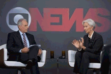 Lagarde with Globonews network anchor William Waack during an interview in São Paulo, Brazil