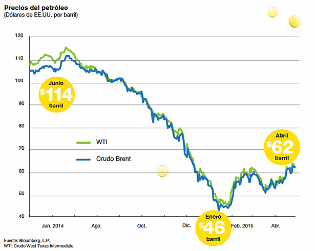 La abrupta e inesperada caída que sufrieron los precios del petróleo en el último año —bajaron más de la mitad de septiembre de 2014 a enero de 2015—ha tenido un impacto significativo en todos los países miembros del FMI. Esta caída, que es parte de una tendencia más amplia de descenso de precios de las materias primas, ha imprimido impulso al crecimiento mundial y ha beneficiado a muchos importadores de petróleo, pero también ha menoscabado la actividad económica en las naciones exportadoras de petróleo.