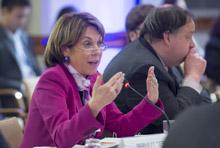“¿Disponemos de espacio fiscal para invertir en puestos de trabajo? Sí. Tenemos que abordar el tema del empleo. Tenemos que sentarnos alrededor de una mesa y preguntarnos, ‘¿dónde está el margen para invertir en empleo?’”, declaró la Secretaria General de la Confederación Sindical Internacional, Sharan Burrow.