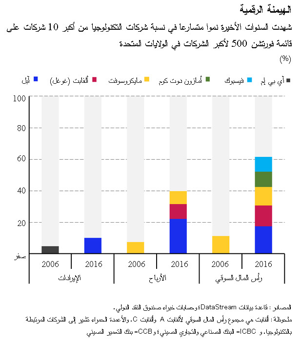 وبعض هذه التحديات مرتبط بالسياسات. فالشركات من أمثال غوغل وآبل وفيسبوك وأمازون معروفة للجميع، لكن الشركات الرقمية حولنا في كل مكان وتنشأ عنها عمليات بيع دون أن يكون لها وجود مادي يُذكر. وهي تستفيد من القيمة التي يخلقها المستخدمين – حيث إن استخدام تطبيقات هواتفنا الذكية تنتج عنه معلومات مجانية ولكنها قيِّمة. فهل تستطيع الحكومات، أو هل ينبغي لها، فرض ضرائب على هذه القيمة في مكان إقامة المستهلك، حتى إذا كان مقر الشركة المادي يقع في مكان آخر؟