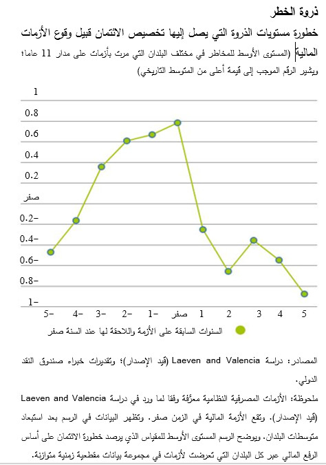 خلصت دراستنا إلى وجود نمط عالمي واضح في تطور هذا المقياس الجديد للهشاشة المالية. فبعد المستويات المرتفعة التي بلغتها مخاطر تخصيص الائتمان في أواخر التسعينات، عادت إلى الانخفاض من 2000 إلى 2004، عقب الأزمتين الماليتين في آسيا وروسيا وفقاعة أسهم شركات الإنترنت (دوت كوم). ومن مستوياتها المنخفضة التاريخية في 2004، ارتفعت المخاطر إلى مستوى الذروة في 2008، حين تفجرت الأزمة المالية العالمية، ثم شهدت هبوطا حادا قبل أن ترتفع من جديد إلى مستويات مقاربة لمتوسطها التاريخي في نهاية 2016، العام الذي يمثل آخر نقطة لتوافُر البيانات. وربما تكون المخاطر قد واصلت الارتفاع في 2017 مع استمرار الانخفاض الشديد في تقلب الأسواق وأسعار الفائدة في الاقتصاد العالمي.