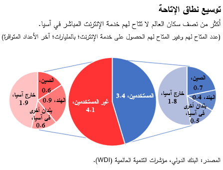 ثالثاً، يلاحَظ أن أكثر من نصف المحرومين من خدمة الإنترنت المباشر يعيشون في آسيا. ورغم زيادة اشتراكات خدمة الإنترنت ذات النطاق الترددي الواسع في المنطقة، فإن الفجوة* آخذة في الاتساع بين البلدان الرائدة والنظراء من البلدان الأقل تقدماً. فعلى سبيل المثال، يبلغ عدد المستفيدين من الشبكات الثابتة ذات النطاق الترددي الواسع في ميانمار أقل من 1% من السكان، مقارنة بأكثر من 25% في سنغافورة. والحكومة الإلكترونية لا يمكن أن تعمل ما لم يتح للناس الوصول إليها.
