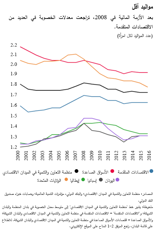 تشير تحليلاتنا إلى أن الأزمة ربما تكون قد خلّفت ندوبا تتعدى الآثار الموثقة على اتجاهات النمو العامة. فعلى سبيل المثال، استمر التراجع الحاد في معدلات الخصوبة في كثير من الاقتصادات- وهو تطور سيشكل عبئا في المستقبل على حجم القوة العاملة في هذه البلدان. وهناك أثر آخر يتمثل في تراجع صافي معدلات الهجرة (الهجرة الداخلة ناقصا الهجرة الخارجة) بعد الأزمة في الاقتصادات المتقدمة.