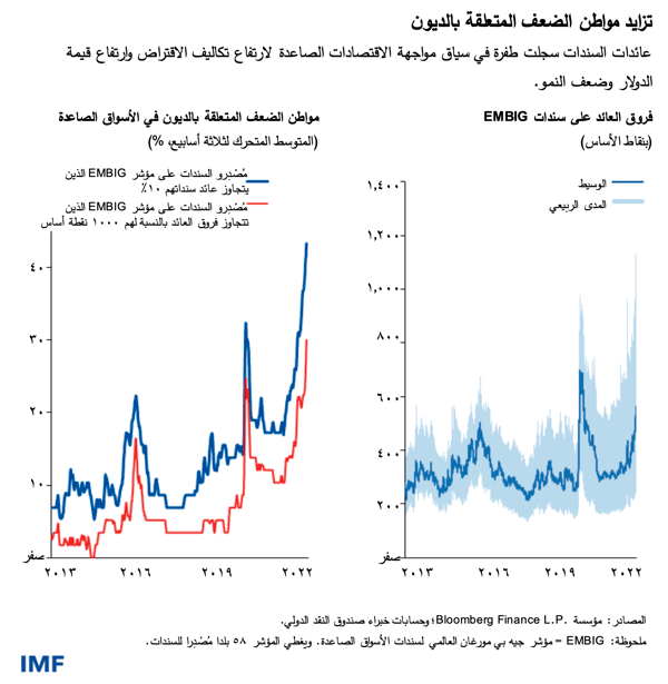 وتأتي مثل هذه التحديات في وقت يفتقر فيه الكثير من البلدان إلى الحيز المالي الكافي، حيث أصبح 60% من البلدان منخفضة الدخل في حالة مديونية حرجة بالفعل أو معرضا لمخاطر كبيرة تهدد ببلوغها، مقابل حوالي 20% من هذه البلدان في الماضي. وسيُدْفَع مزيد من البلدان إلى المستوى الحرج بسبب ارتفاع تكاليف الاقتراض، وتقلص تدفقات الائتمان، وارتفاع سعر الدولار، وتراجُع النمو.