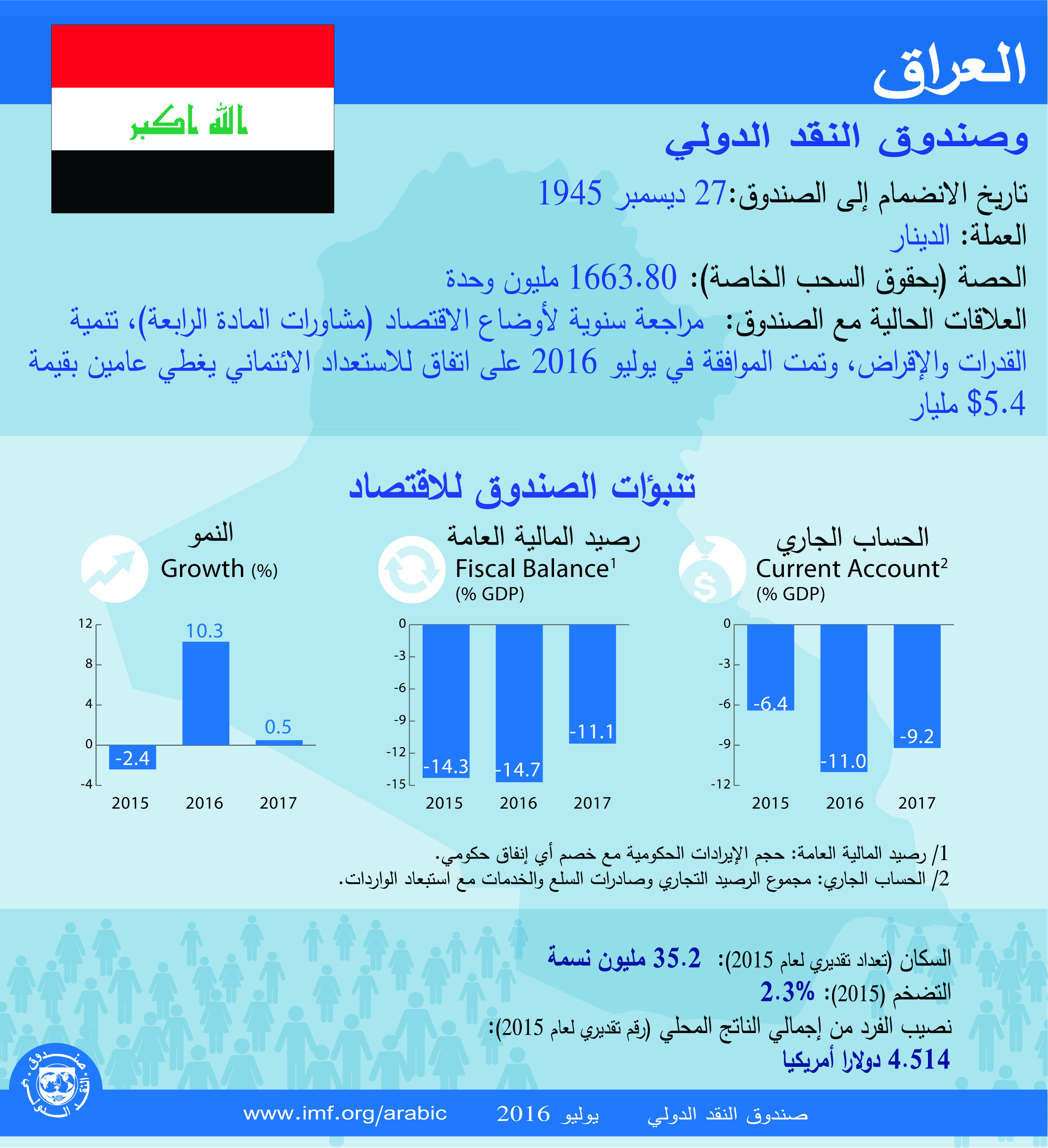 العراق يحصل من الصندوق على قرض بقيمة 5.34 مليار دولار أمريكي لدعم الاستقرار الاقتصادي