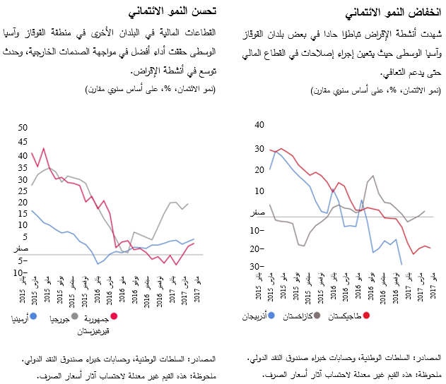 ساعد انخفاض أسعار الصرف وزيادة مرونتها على تخفيض عجز الموازنة والميزان التجاري في عدة بلدان، ولكنهما كشفا في نفس الوقت عن وجود مواطن ضعف عميقة الجذور في بعض النظم المصرفية. وقد تباطأ النمو الائتماني بدرجة حادة في هذه البلدان، وينبغي إجراء إصلاحات في القطاعات المالية حتى تتمكن من دعم التعافي الاقتصادي. ولأن أسعار الصرف لم تعد ثابتة، ينبغي أن تعزز هذه البلدان أطر سياساتها النقدية بتحديد أهداف واضحة لهذه السياسات، والإفصاح عنها للجمهور، ودعم استقلالية بنوكها المركزية. وهي تحتاج أيضا إلى التعجيل بتحسين التنظيم والرقابة في القطاع المصرفي، واحتواء مشكلات البنوك المتعثرة والقروض الرديئة، وإلغاء ممارسات الأعمال التي تتسبب في منح قروض عالية المخاطر.