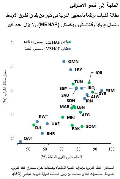 غير أن مستويات النمو تلك لن تكفي لتوليد الوظائف المطلوبة لخفض البطالة – ولا سيما للشباب العاطل عن العمل الذي يشكل 23% تقريباً من شباب المنطقة.