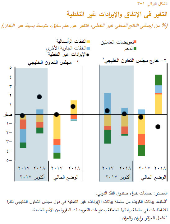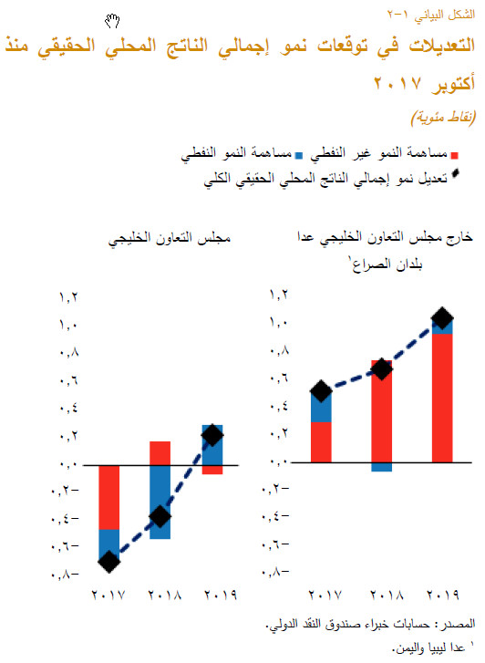 وصل النمو الاقتصادي في البلدان المصدرة للنفط في منطقة الشرق الأوسط وشمال إفريقيا وأفغانستان وباكستان إلى أدنى مستوياته في عام 2017 ومن المتوقع أن يتسارع في عامي 2018-2019. ويرجع هذا إلى حد كبير لاستمرار تعافي النشاط غير النفطي حيث تواصل بلدان كثيرة إبطاء وتيرة الضبط المالي دعما للطلب المحلي. ولا تزال كفة التطورات السلبية هي الأرجح في ميزان المخاطر المحيطة بالآفاق المتوقعة نحو التطورات السلبية. ومن هذه المخاطر احتمال حدوث تضييق حاد للأوضاع المالية العالمية، وتصاعد التوترات التجارية، والتوترات الجغرافية-السياسية – في حين لا تزال الآفاق المتوقعة لأسعار النفط ضعيفة ومحاطة بدرجة كبيرة من عدم اليقين. وإذا تحققت هذه المخاطر، فقد تؤدي إلى تعرض بلدان كثيرة في المنطقة لضغوط مالية وتمويلية كبيرة، مما يؤثر على آفاق استمرار الضبط المالي والتعافي الاقتصادي. وتؤكد آفاق النمو الضعيفة على المدى المتوسط أهمية تعجيل وتيرة الإصلاحات الهيكلية المزمع إجراؤها.