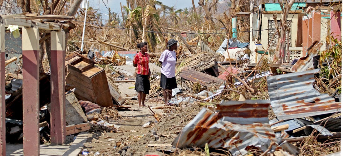Women look at destruction after Hurricane Matthew struck Haiti ( photo: Patrick Farrell/Miami Herald/TNS)[/caption]