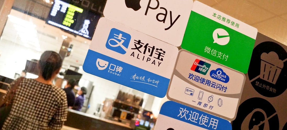 A signboard at a store in Guangzhou, China, lists various forms of mobile payment (photo: Imagine China/Newscom)[/caption]