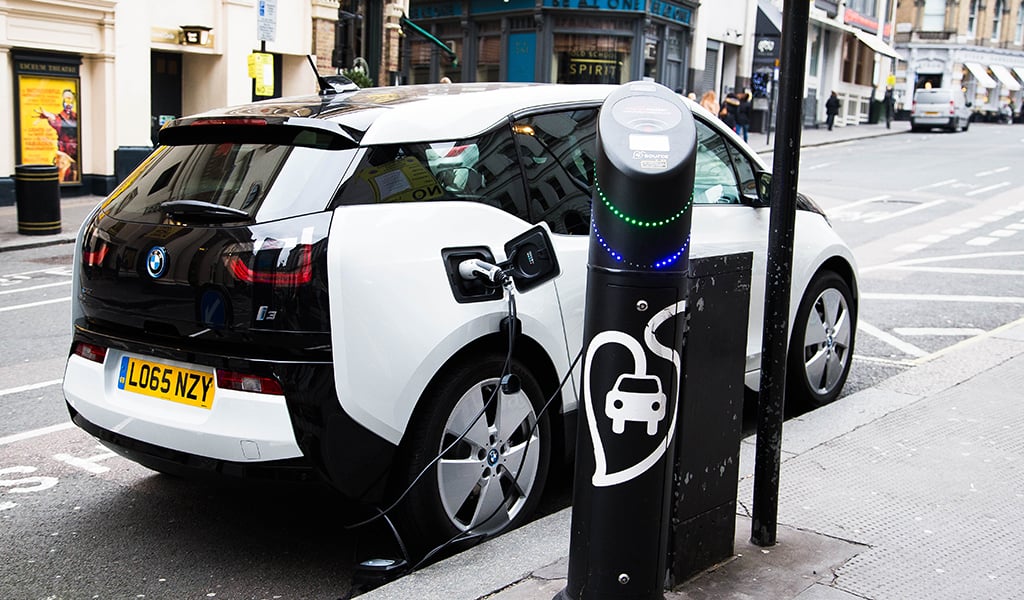 An electric car recharges at a meter in London: The UK is the latest country to announce plans to end fossil fuel vehicle sales by 2040 (photo: Sasha Fox Walters/iStock by Getty Images)[/caption]