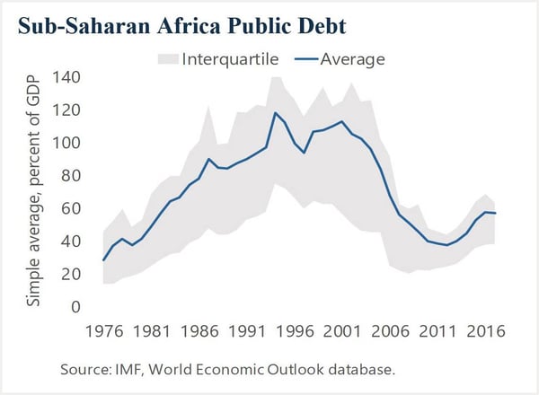 Sub-Saharan Africa is confronting a pronounced rise in public debt. At the end of 2017, average public debt in the region was 57% of its GDP, an increase of 20 percentage points in just five years. While this is well below the peaks of the early 2000s, the current spike is concerning.