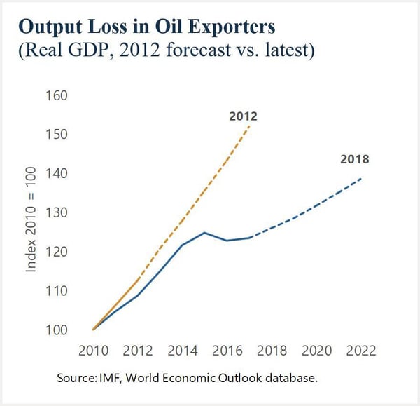 In the broadest sense, three factors account for the current debt challenges. For starters, the region’s commodity exporters, and particularly its oil exporters, were hit hard by the 2014-2016 slump in prices. Africa’s lost output and associated debt increases are comparable to the experience of advanced economies following the global financial crisis. Today, eight of the region’s fifteen debt-troubled LICs are commodity exporters.