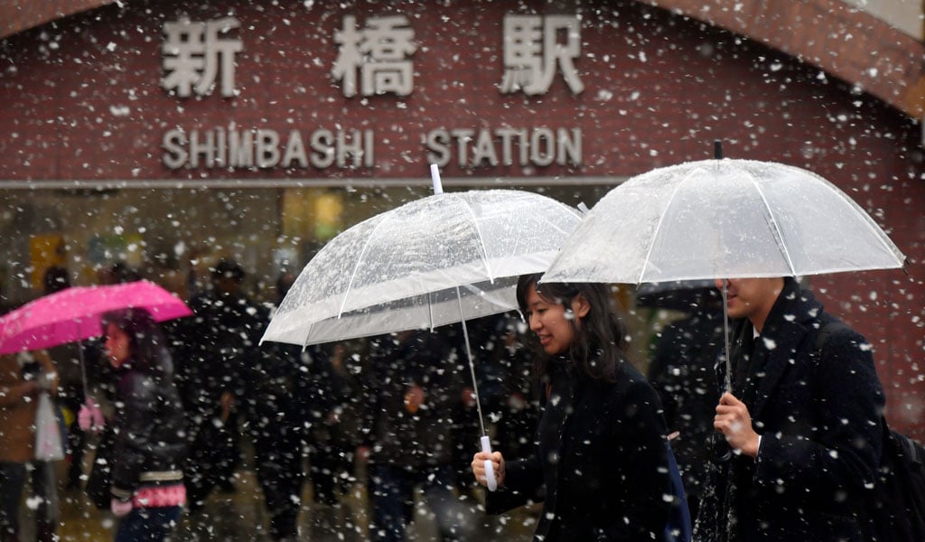Pedestrians in the snow in Tokyo, Japan: the country is one of the top three borrowers in the world (photo: Morio Taga/Newscom)[/caption]