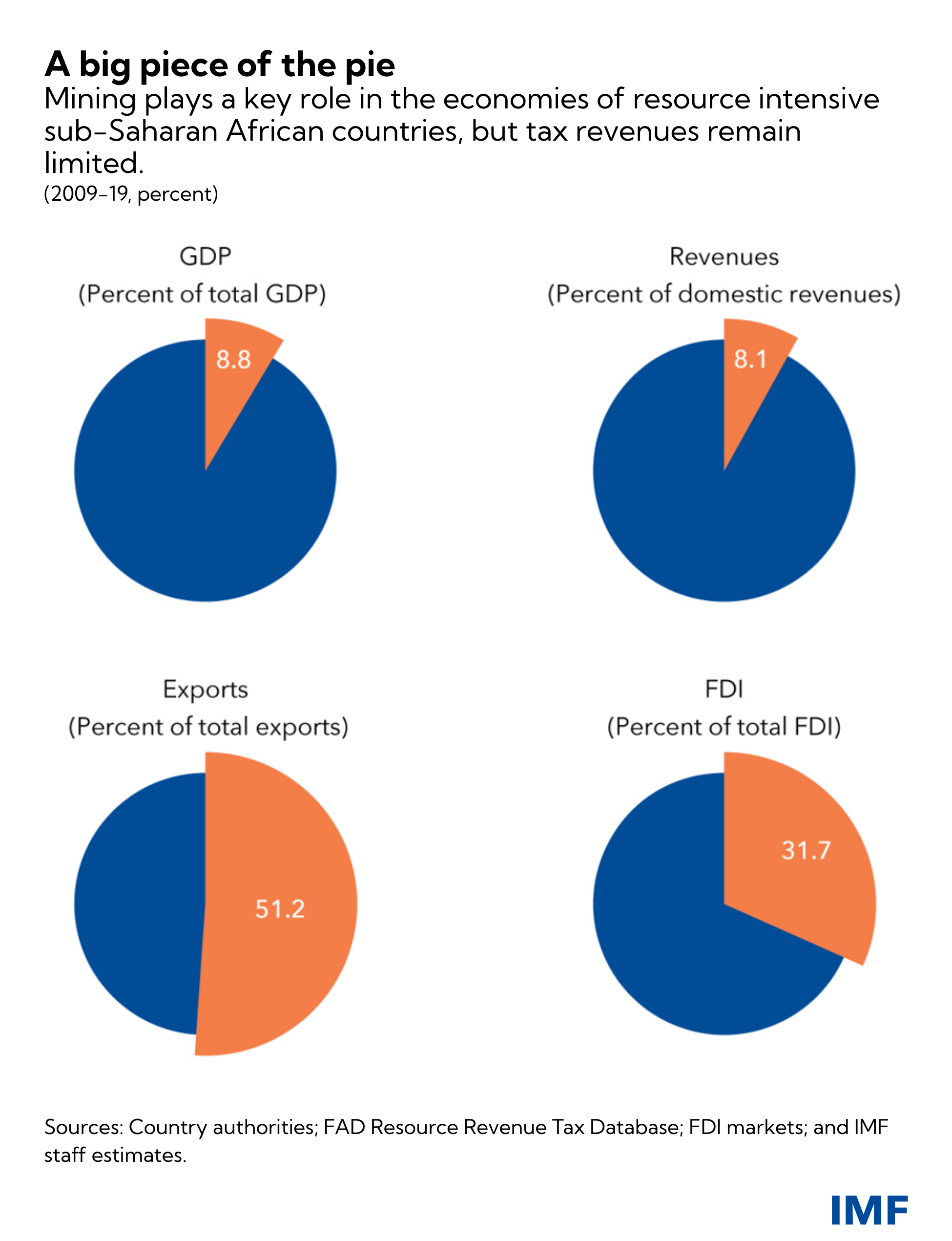 The importance of mining to economies in the region is clear. The mining sector contributes about 10 percent to GDP across 15 resource intensive sub-Saharan African countries. In most of these countries, mining exports represent 50 percent of total exports on average and is the main source of foreign direct investment.