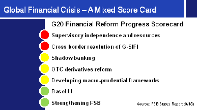 Second, global financial regulation. To address the origins of the crisis, G20 members committed to a fundamental overhaul of global financial regulation, with the intention of promoting a more transparent, safe, and resilient global financial system.