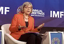 Deborah Greenfield, ILO Deputy Director General for Policy, speaking at Helping Countries Strengthen Social Spending seminar. 2019 IMF-World-Bank Annual Meetings. (IMF photo)