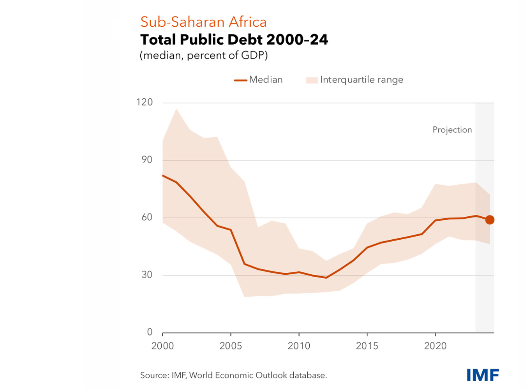 After rising for almost a decade, sub-Saharan Africa’s public debt has largely stabilized at around 60 percent of gross domestic product and is projected to decline slightly from 2024, according to our latest Regional Economic Outlook.