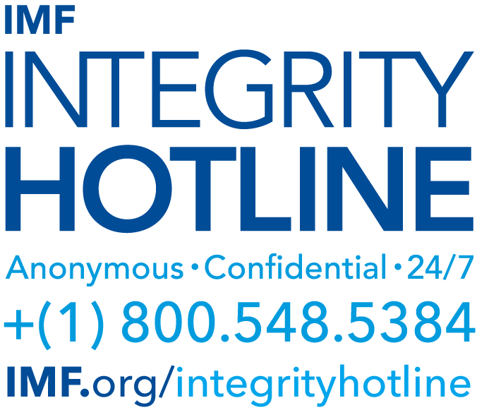 For more information about the IMF Integrity Hotline, or to submit a report or follow up on an existing report, please visit IMF.org/integrityhotline.