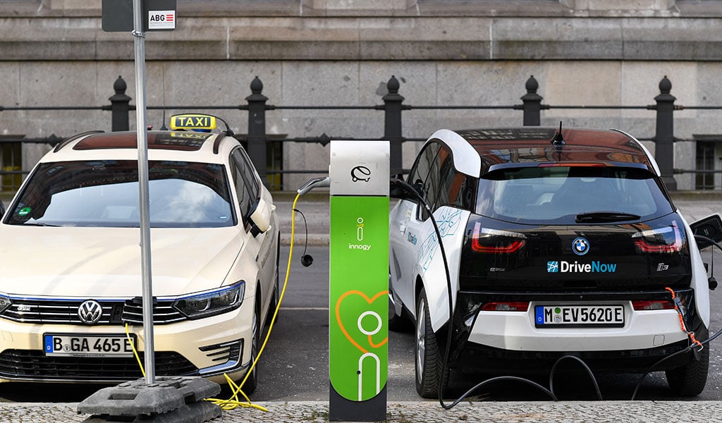 Electric car charging station in Berlin, Germany: prices for lithium and cobalt—key ingredients in rechargeable batteries—are rising due limited supply and growing demand for electric cars (photo: Jens Kalaene/Newscom)[/caption]
