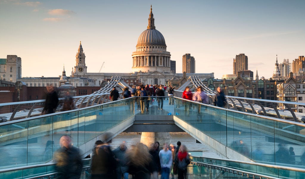 The Millennium Bridge in London, England: governments often don’t include the value of their assets, like bridges and roads, as well as natural resources, when they measure public wealth (Ingram Publishing/Newscom)[/caption]