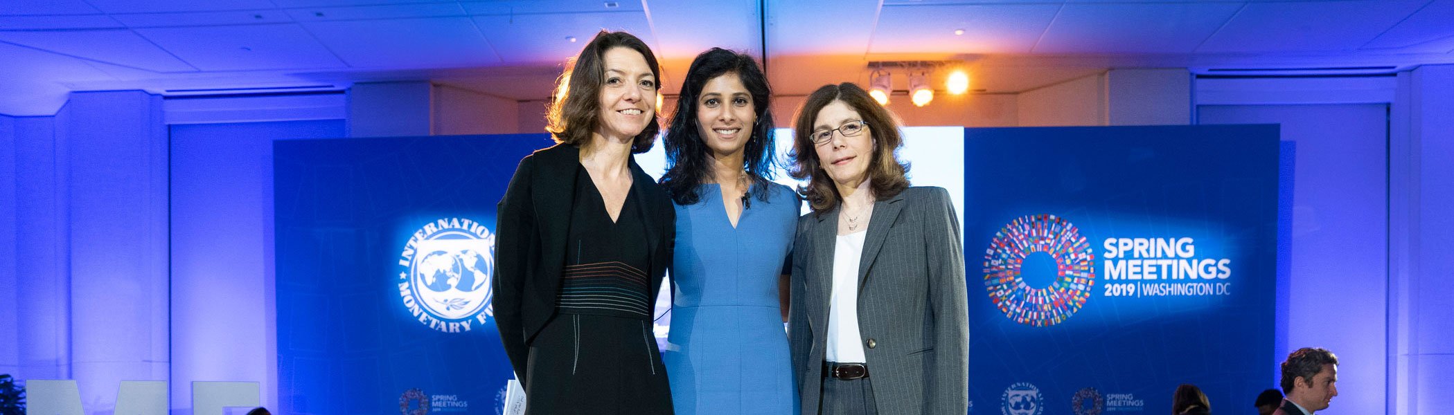 The IMF’s Gita Gopinath, the World Bank’s Pinelopi Koujianou Goldberg, and the OECD’s Laurence Boone—all chief economists of their respective institutions, talked about inequality and its economic origins during a roundtable discussion opened by Christine Lagarde during the IMF’s 2019 Spring Meetings.