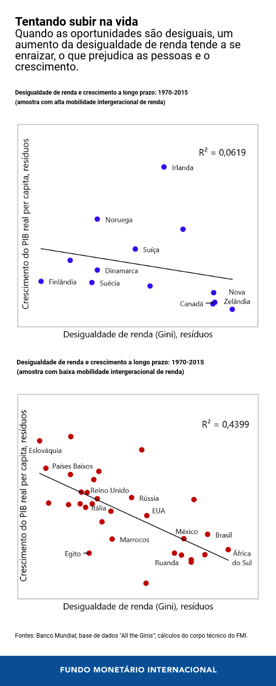 Em sociedades onde as oportunidades são desiguais, inclusive entre as gerações, um aumento da desigualdade de renda tende a se enraizar, o que limita o potencial e as perspectivas das pessoas de baixa renda e reduz o crescimento a longo prazo.
