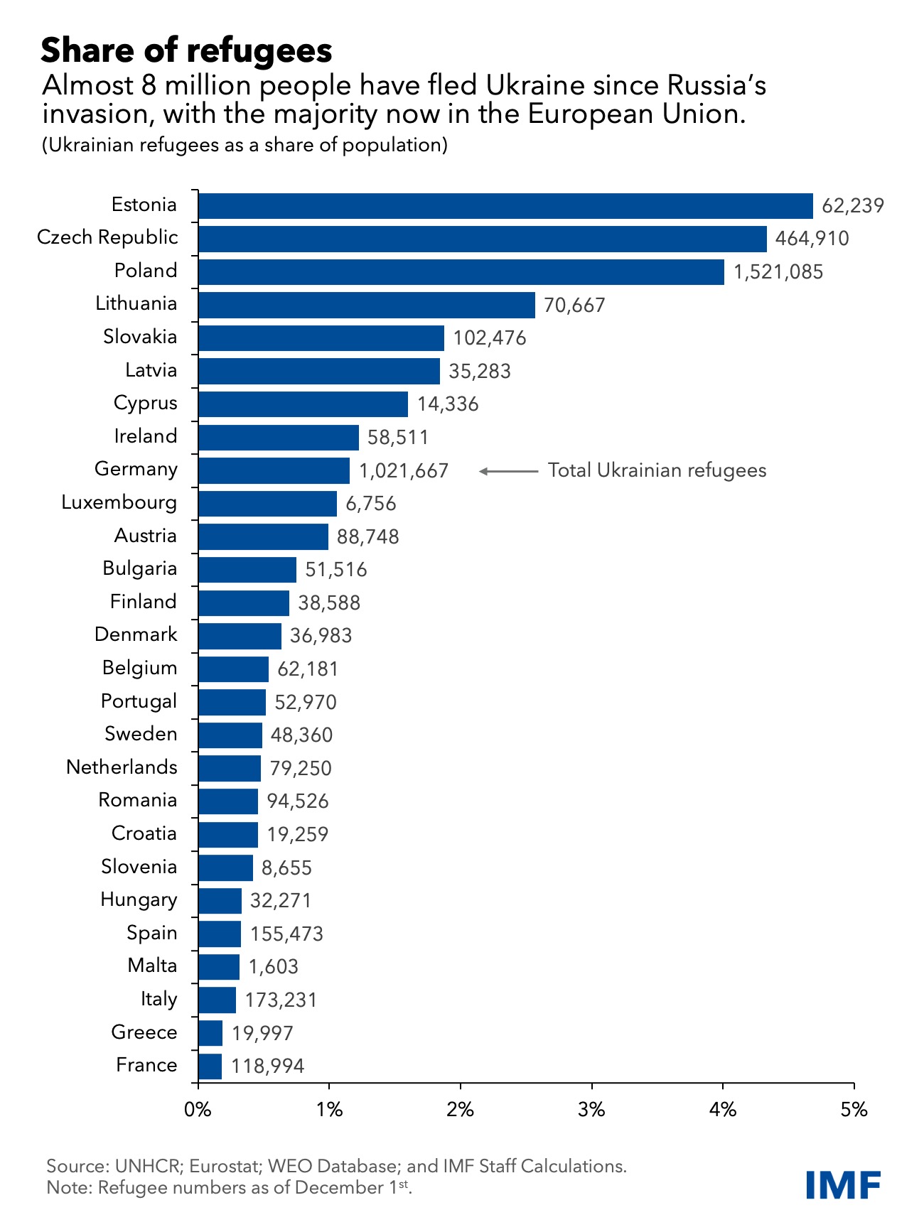 The need to further support Ukrainian refugees comes at a testing time for Europe, as countries battle with rising energy and food prices and sharply slowing economic growth. Yet it is important to continue the strong solidarity that has allowed Europe to respond so effectively to the refugee crisis so far. Policies that help refugees to integrate economically will help Europe as well as those fleeing Ukraine.
