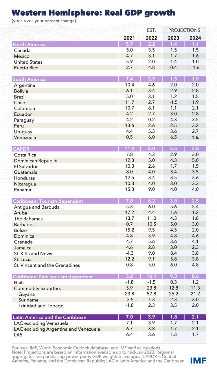 Despite this encouraging news on growth and inflation, 2023 is likely to be a challenging year for the region. Growth this year is poised to slow to just 2 percent, amid higher interest rates and falling commodity prices. Job creation and consumer spending on goods and services are both slowing, and consumer and business confidence are weakening. Growth will also be held back by a slowdown in trading partners, particularly the United States and the euro area. Moreover, downside risks—including from tighter-than-anticipated financial conditions and Russia’s war in Ukraine—continue to dominate.